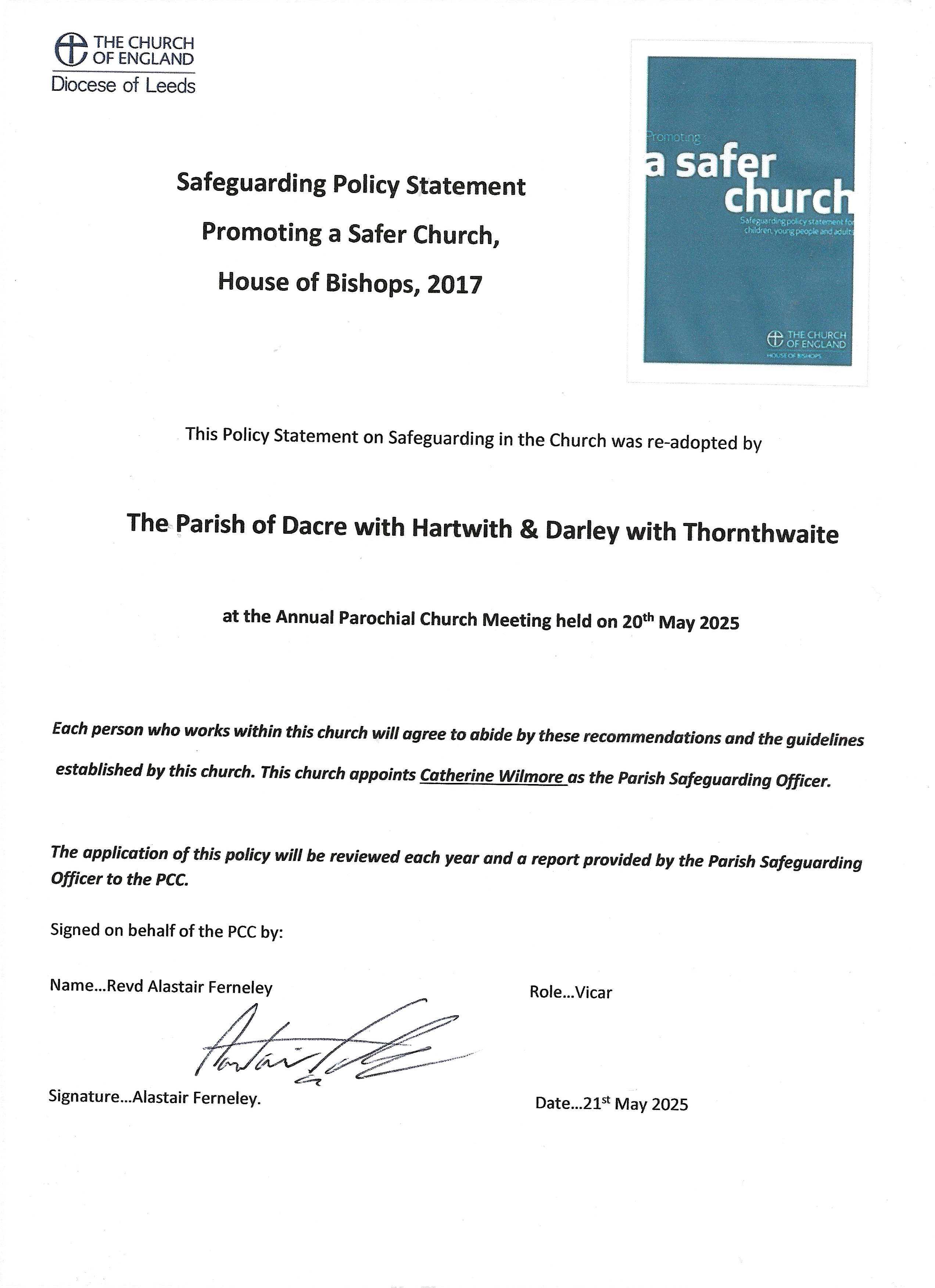 Please email Reverend Alastair Ferneley who can be contacted via irreverend@btinternet.com if you have any concerns around the welfare of a child, young person or vulnerable adult. If you would prefer to phone, then please call on 01423 780262. Or contact the parish Safeguarding officer:
